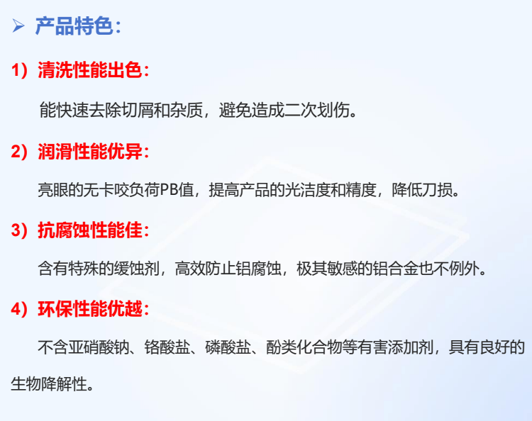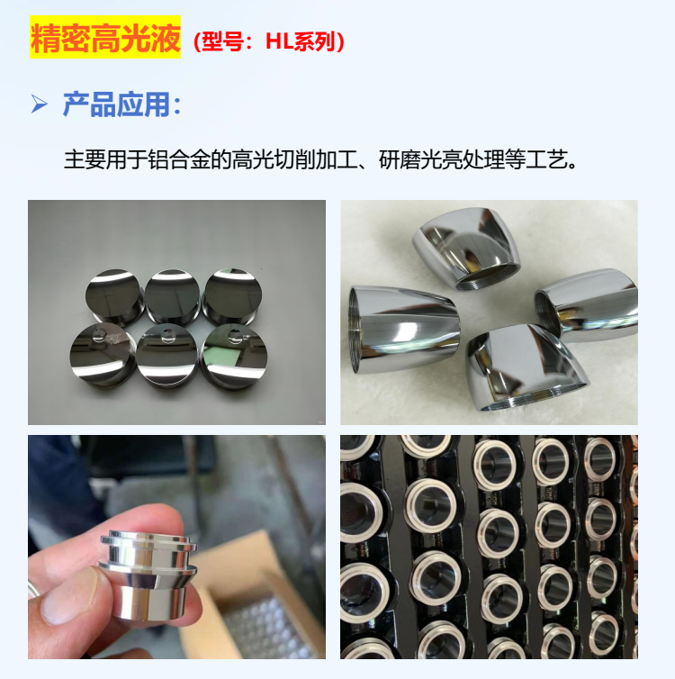 主要用于铝合金的高光切削加工、不研磨光亮处理等工艺。
